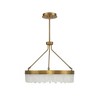 Create a breathtaking glow with the Savoy House Landon pendant, which features a circular shade adorned with dramatically-cut pieces of calcite that are illuminated from within by integrated LED light sources. The warm brass finish adds to the bright, warm look. Landon is 22" in height and 27" in width. It comes with four 12" downrods and one 6" downrod, plus 80" of cord.