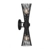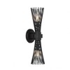 Collection: Longfellow, Material: Metal, Finish Color: Matte Black, Width: 5.12", Height: 20", Depth: 6", Backplate Width: 5.12", Backplate Length: 5.12", Lamping Type: Incandescent, Number Of Bulbs: 2, Wattage: 60 Watts, Dimmable: Yes, Moisture Rating: Damp Rated, Desc: The Savoy House Longfellow 2-light sconce showcases a fashionable style with metal rods that are gathered together at the center and unfurl outward. When the lights are on, it creates a dramatic glow that is sure to catch the eye. Burnished Brass finish. Longfellow is 20" in height, 5.12" in width and extends 6" from the wall. Uses two candelabra size bulbs of up to 60 watts per bulb. Bulbs not included. Damp area rated.,