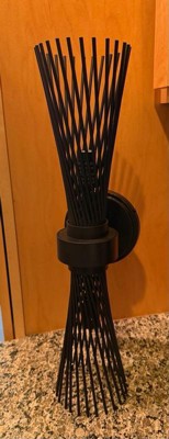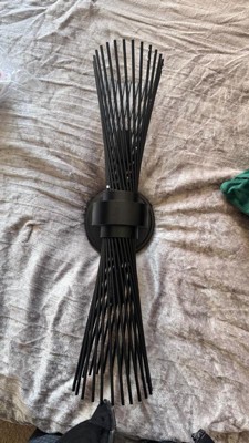 [This review was collected as part of a promotion.] This sconce is very modern looking. I like the design of the metal rods and how they sort of fray out. It has a place for two lightbulbs so it puts out a good bit of light. It is heavy duty and sturdy. It comes with everything you need to hang and wire it in, as well as the instructions on how to install it. It has a matte black finish and would go well with a lot of different decors. The sconce is a good size and works nicely as far as being proportionate. I like how it adds the perfect touch to our guest bedroom.