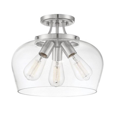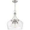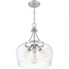 A bold, light-colored frame and streamlined silhouette create an air of elegance and sophistication. The lustrous, brushed, satin nickel finish and large, clear glass shade go with absolutely everything: any color palette and many other finishes. Whether you have transitional, contemporary, bohemian, or other decor styles in your home, you’ll love the way this Octave fixture stylishly blends in. And at 15” wide by 18” high, this pendant is a graceful, proportionate size —even when grouping a few together. The curved glass shade has a sleek, uncluttered look, and three 60W, E-style bulbs provide lovely light —for clean, casual style in your dining area, living room, kitchen, foyer, bedroom, bathroom, hallway, family room, office, great room, or stairway.
