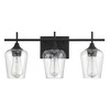 The Octave 3-light bath bar from Savoy House has understated elegance. It features large curved shades of clear glass, minimal detailing and a matte black finish. It may be mounted as either uplight or downlight. Bath bar lights are a classic choice for illuminating vanity mirrors in bathrooms big and small. Because the bulbs are exposed, try using stylized bulbs (not included) such as Edison for a different look! The matte black finish can be paired with black hardware or mixed with hardware in other fixtures. Try the Octave with glam, transitional or contemporary style rooms for a chic look. When you choose a Savoy House lighting fixture, you can be certain you've selected a piece that will withstand the test of time.