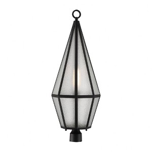 Collection: Peninsula, Material: Glass, Finish Color: Matte Black, Width: 12", Height: 36", Length: 12", Lamping Type: Incandescent, Number Of Bulbs: 1, Wattage: 60 Watts, Dimmable: Yes, Moisture Rating: Wet Rated, Desc: Decorate your great outdoors with the highly glamorous Savoy House Peninsula 1-light outdoor post lantern. Its tall, slim, diamond-like design showcases panes of art glass that obscure the light within and create lots of eye-catching texture. Matte Black finish. Peninsula is 36" in height and 12" in width. Uses one standard size bulb of up to 60 watts. The bulb is not included. Wet area rated.,