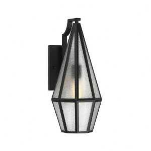 Collection: Peninsula, Material: Metal, Finish Color: Matte Black, Width: 7.5", Height: 18", Depth: 10.5", Backplate Width: 4.5", Backplate Length: 6.25", Lamping Type: Incandescent, Number Of Bulbs: 1, Wattage: 60 Watts, Dimmable: Yes, Moisture Rating: Wet Rated, Desc: Decorate your great outdoors with the highly glamorous Savoy House Peninsula 1-light outdoor wall lantern. Its tall, slim, diamond-like design showcases panes of art glass that obscure the light within and create lots of eye-catching texture. Matte Black finish. Peninsula is 18" in height, 7.5" in width and extends 10.5" from the wall. Uses one standard size bulb of up to 60 watts. The bulb is not included. Wet area rated.,