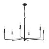 Rustic charm and an expansive reach define the Salerno Collection, which beautifully enhances a large space without taking the attention away from other design elements in the room. Measuring 42" wide x 25" high, the six-light chandelier offers ample illumination from six 60-watt candelabra bulbs. The matte black finish offers a more dramatic touch.