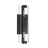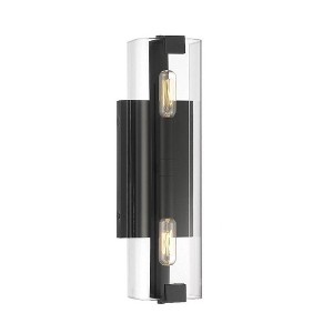 Sleek and sophisticated! The Winfield wall sconce has an eye-catching design, yet the clean lines and transparent glass keep the mood serene. Bold straight lines of the wall plate, frame, and bulb sockets are highlighted by the matte black finish. Two 60W, C-style bulbs, one facing up and one facing down, provide splendid illumination through the pristine, clear glass shade. Using exposed filament bulbs will add to the chic design. This sconce is 4.5” wide, 15.5” high, and extends 4” from the wall. Overall, it’s a stylish fixture to place alone or in multiples, along the walls of your dining room, living room, entryway, kitchen, family room, office, hallway, bedroom, or media room.