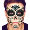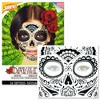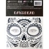 - Skeleton Face temporary tattoo kit features black designs and silver glitter designs.