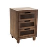 - Vertically slatted drawer fronts give the cabinet a look of simplicity and unique craftsmanship.