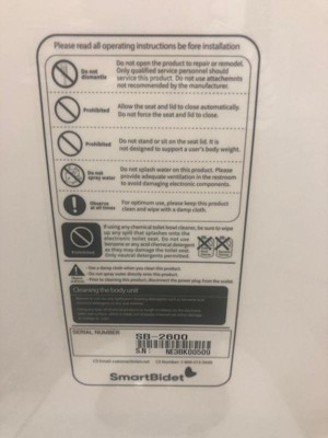 SmartBidet SB-2600 Electric Toilet Seat with Unlimited Heated Water and Touch Control Panel for Elongated Toilets White: Polypropylene