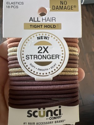 scünci No Damage 2X Stronger Elastic Hair Ties - Browns/Gold - All Hair - 4mm - 18pcs