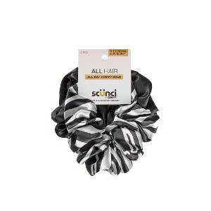 scünci Classic Chic Large Satin Scrunchies - Black/Zebra Print - All Hair - 2pcs