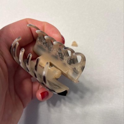 PLEASE go back to the old grippy material and claw material, Scunci! These used to be five-star fantastic. I had a dozen of them, all over the house, my car, at work, etc. For the past twenty years, they were the only ones that consistently held my ultra fine, thin, slippery hair. Well, some time in the past few years they’ve started using a different material for the grippy blobs so they don’t grip as well as they used to and the plastic is a bit thinner and more fragile. I just bought this one a few weeks ago and it’s already broken and was frequently slipping out of my hair, both issues I never encountered before. My old ones typically lasted five or six years before a tooth/talon would eventually break, and when I put them in my hair they held it perfectly until I took them out at the end of the day. Breaking within a few weeks, and in such an odd place, is unacceptable. If you have nice thick hair or hair with texture, these may still work for you, but those of us with thin, fine hair that is super slippery, I don’t know what we can use as even other products claiming to be for thin hair slip out in mine.
