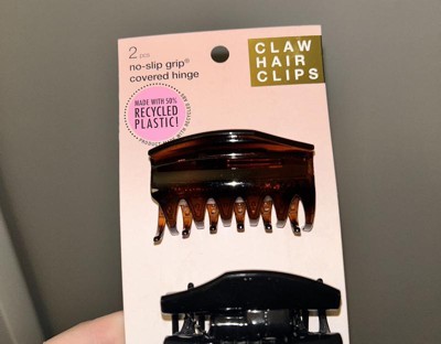 The covered hinges on these claw Clips means you don’t see any metal! Hair is held in place by elegant tortoise shell or black clips. Shiny or soft-touch – choose your favorite 2-pack.