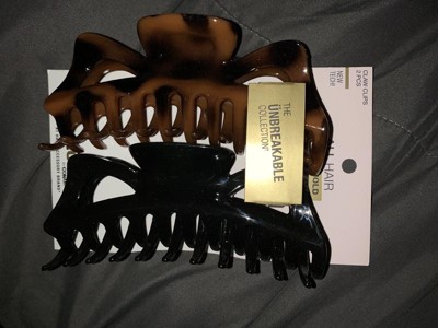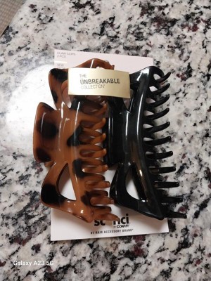 The Ünbreakable Collection, new to scünci! This 2-pack offers large claw clips that are crafted for holding back lots of hair—plus they have really been put to the test. These claws can withstand accidental dropping, stepping on, and everyday, normal wear and tear (see packaging for more details).