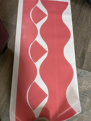 I got this to decorate the area around my daughter’s bedroom door, but I didn’t quite think it through. There is a heating register above the door frame which prevents me from outlining the door completely. It looked a little odd so I just took it down. It is easy to work with and can be placed multiple times to get it right. It’s a nice thick material and good quality. The color seems deeper in person —I was thinking it was a little of a light pink leaning coral, but it’s a deep more orangey-red corral. I am going to use this border for crafts because I think it will work perfectly for another project.