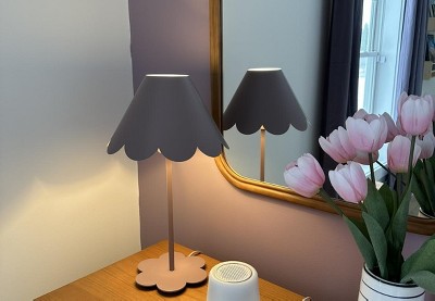 Enliven your tabletop decor with this Scallop Shade Metal Table Lamp from Threshold™ designed with Studio McGee. Crafted with a metal frame, the table lamp features a stylish silhouette, with a scalloped empire shade and floral base to create a charming look. The table lamp has a one-way light setting with a simple on/off switch for easy operation.