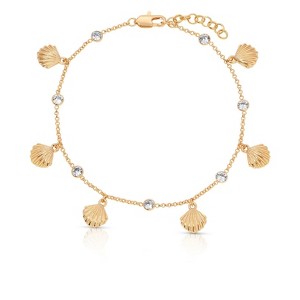 Add a touch of sparkle with our Scallop Shell Charm Anklet, meticulously crafted with a luxurious 18k gold plating and dotted with sparkling crystals. This fun piece showcases scallop shell charms that make you feel never too far away from the beach.