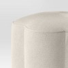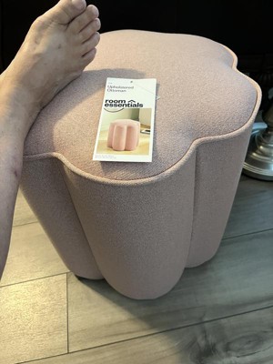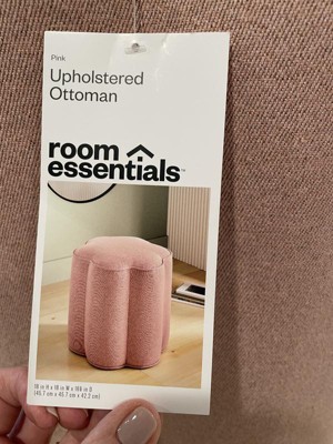Update your seating ensemble with the standout style of the Scallop Upholstered Velvet Ottoman from Room Essentials™. This round ottoman is crafted with scalloped sides for an amazing look you'll love adding to your dorm furniture, living room, study or any other area. Designed with a wooden frame, this upholstered ottoman features a padded seat to help keep you comfortable as you sit or rest your legs.