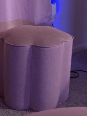 This is a very nice little ottoman! I put it in my girl’s room with a wooden chair. It’s very comfortable to use as a footrest or to sit on, both for us adults and the children. The shape is like a flower, and it’s heavy in a way that is sturdy but not too heavy to move to clean underneath. It’s easy to spot treat and feels very durable.