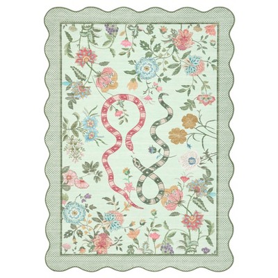 Scalloped Edge Area Rugs for Living Room Bedroom Floral Printed Snake Pattern Washable Rug Soft Non-Slip Low Pile Accent Rug