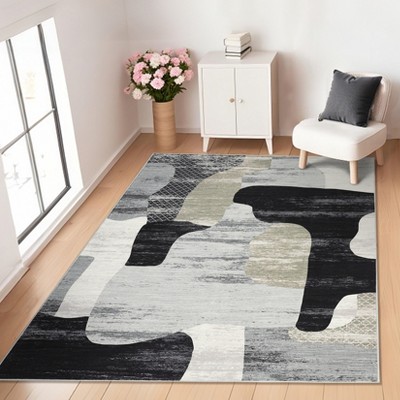 Scalloped Edge Area Rugs for Living Room Bedroom Modern Washable Rug Soft Non Slip Low Pile Accent Carpet