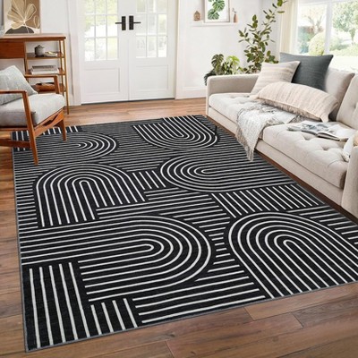 Scalloped Large Modern Abstract Area Rug 10x13 Washable Rug for Living Room, Non-Slip Soft Carpet for Bedroom