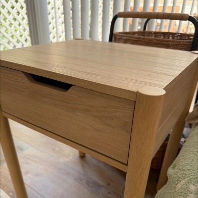 Great value for the price! I was a little skeptical ordering a side table at this price point, but I’m really happy with it. Assembly was straightforward and didn’t take long at all. Yes, it’s MDF but honestly the finish looks clean and the wood-tone is really pretty in person. The drawer is a good size for storing small things. It fits perfectly next to my couch and looks way more expensive than it actually is. Would definitely recommend if you’re looking for something simple and stylish without breaking the bank!