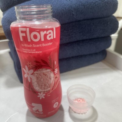 [This review was collected as part of a promotion.] These are the up&up floral in-wash scent booster beads. I use scent booster beads in my wash loads every time I wash. I had never tried these so as a first time user I was impressed. The scent is superb, it is a light floral that smells great. I was worried it would be like an over powering rose scent which many times is the case with a pink floral scent, but it smells nice and fresh. The price was great and I only used half a cap for a load of towels. They came out of the dryer smelling clean and floral and fresh. I received an incentive to write this review.