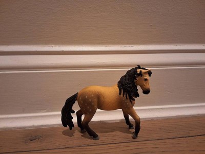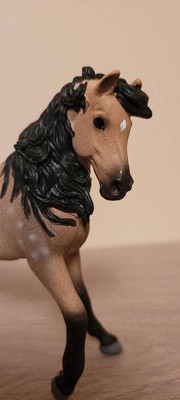 [This review was collected as part of a promotion.] This is one of my new favorite Schleich. The Andalusian Mare is an absolutely stunning Buckskin. Her shading is deep with detailed dapples throughout. Her mane blows in the wind across her neck she also has a cute little star.