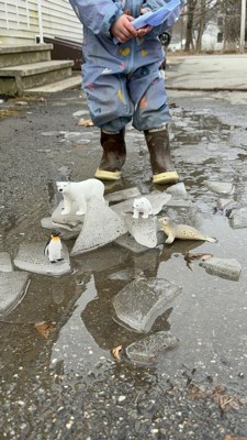 "Brrrrrr! These arctic animals are ready to roam the frozen tundras of your playroom. The five-pack of arctic animal toys includes a polar bear, a polar bear cub, a penguin, a seal, and a reindeer. Grab your parka and snow boots…a chilly adventure in storyland awaits! One day, a polar bear family, a seal, a penguin, and a reindeer took a vacation to the beach…and then? These arctic animal figures love playing in your child's stories…where ""what if"" and ""why not"" make anything possible. A penguin water-skiing? Sure! A polar bear sunbathing? Yeah! Bring home an arctic animal figure pack and watch as playtime becomes a million stories for the imagination."