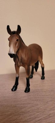 [This review was collected as part of a promotion.] The first ever Schleich Mule does not disappoint! He has lovely shading, with dark black legs and nose, very light belly and Bay throughout. He stands attentively with his long ears raised. His face is incredibly sweet.