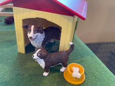 "Awwwww...it's a mama Australian Shepherd and her pup! After helping the farmer round up sheep, these hard-working farm dogs are ready for a nap in the brightly colored dog kennel. The Friendly Dog House playset comes with the two dog figurines and their kennel, plus a toy bone, dog dish, and toy stick for puppy playtime and snacks. Rain or shine, the Friendly Dog House is home sweet home!Schleich farm toys for toddlers and kids introduce the endless possibilities of storytelling and imaginative play. From little donkey foal figurines to big barns filled with horses and cows, Schleich Farm World has all the animal figures and farmer figures and sets you need to let your stories run wild! For even more action and adventures, our farm toys and figures play well with Schleich unicorn toys, dinosaur toys, wild animal figures and toy horses! Schleich playsets are built to last. All our toys meet the highest national and international safety standards."