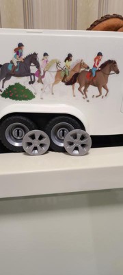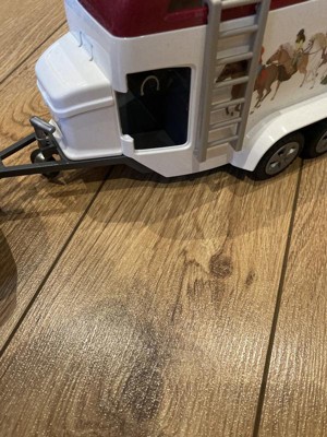 It's very nice and I love the car, the trailer is amazing too. But there's one thing I don't like, the horse. The horse looks very tacky and red, and her pose is weird. And, I wanted to take out the barrier in the trailer, but it's very hard to.