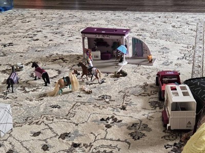 [This review was collected as part of a promotion.] I absolutely love that this set has a gentleman figure with it. It's always nice to see diversity especially in a place that such as this. It comes with a very beautiful palomino horse and tons of accessories. One of my favorite accessories Is the plant, that is such a unique touch. I also really like how it comes with helmets and a mirror too. It's a lot of fun for someone younger to play with. It has a neat carrying handle which makes it easy to travel around with and take with you.