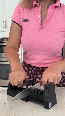 [This review was collected as part of a promotion.] Sturdy and easy to use. Sharpened my knives quickly and effortlessly, leaving them razor-sharp. Sleek design looks great on the counter. Love it!