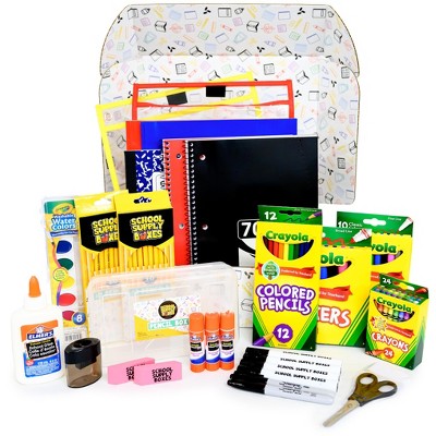 Back to School shopping is simple with this school supply pack, perfect for the elementary students, middle school students, high school students, or Art Majors in college Get your school essentials kit here which includes: (1) broad line markers 10 count, (1) fine line markers 10 count, (1) color pencil 12 count, (1) crayons 24 count, (1) water color paint set, (3) glue sticks, (1) glue bottle 4 oz This school kit also includes: (20) #2 Dixon pencils, (2) pink erasers, (4) Universal chisel tip dry erase markers, (2) dry erase pockets, (2) 2 pocket 3 prong folders, (2) wide ruled 1 subject notebook, (1) wide ruled composition notebook, (1) pencil box, (2) Sharpie black markers, (1) pair of scissors, (1) pencil sharpener School essentials kit for all ages of school students, back to school kit, school supplies for all ages of school students, school kit, freshman school supplies, sophomore school supplies, junior school supplies, senior school supplies, artistic essentials, high school bundle