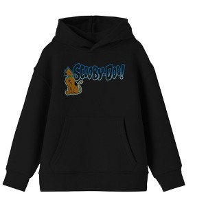Solve a mystery with the sleuthing hound and his friends with this Scooby Doo sweatshirt. The hoodie features Scooby Doo leaning against black letters with blue outlines that spell out his name as he wears a sheepish grin on his face. The sweatshirt comes in black and is equipped with a large pouch pocket and a double-lined hood. Bring this comfy and cozy sweatshirt home to your young Scooby Doo fans today.