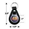- QUALITY MATERIAL: Our durable round keychain is crafted from leather with a glossy resin-topped emblem featured design shown on one side. Approximately 1.5" (3.8cm) x 2.5" (6.4cm) in overall size, emblem is 1" (2.5cm)..