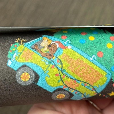 So sad about this one. I love Scooby-Doo. But it's not real wrapping paper. It's not glossy or smooth. It's just an oversized piece of copy paper. There's nothing "premium" about it. The quality of ink isn't even nice enough to justify the price. It clearly looks printed, and not in a professional way. Returning today. Won't be buying this brand again. I have a feeling most of their products are made the same way. So unfortunate. It was a cute pattern online.