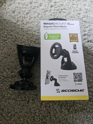 [This review was collected as part of a promotion.] • Scosche MagicMount Magnetic Phone Mount Strong magnet, sleek design, and super convenient. Holds phones firmly even with a PopSocket attached. Quick to install and works great on dash or windshield.