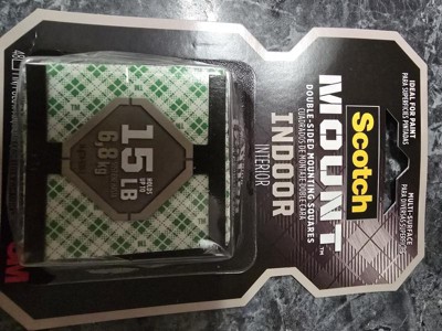 [This review was collected as part of a promotion.] Scotch Mount Indoor double sided mounting squares is super easy to use for anything that you want to hang that is less than 15 pounds. It is very easy to apply to the surface that you want to hang something and the double sided tape is easy to apply. This would be great for teachers in their classrooms or for decorating a child's room or college dorm. I highly recommend to friends and family and will continue to buy
