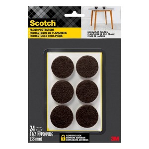 - GREAT FOR FURNITURE AND DÉCOR: Scotch felt pads for furniture on hardwood floors are great for chair legs, tables, stools, lamps, couches, plants, or anything on a finished surface. EASY TO USE: These chair leg protectors for hardwood floors have their own adhesive to make installation easy. Just peel and stick to the bottom of furniture feet to keep surfaces safe. PROTECT HARD SURFACES: Protect your home with felt furniture pads for hardwood floors, tile, laminate, and vinyl. FORGET ABOUT SCRATCHES: These chair leg floor protectors for hardwood floors prevent nicks, dents, and scratches. READY TO REAARANGE: Furniture felt pads for chairs, tables, and TV stands let you easily slide furniture without damage. Color: Brown Size: 1.5 in. x 1.5 in Package Contents: 24/Pack