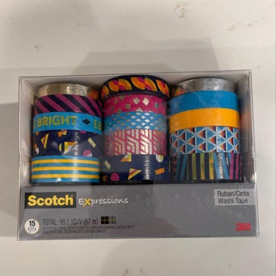 Scotch 15pk Expressions Washi Tape: Multicolor Decorative & Cute Tape Set for Art & Stationery