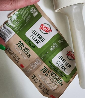 Go green with Scotch-Brite Greener Clean Lint Roller. The Greener Clean Lint Roller uses 70% less plastic, but has the same great pickup* that you have come to expect from Scotch-Brite. This refillable lint roller fits with the Scotch-Brite 100% recycled plastic handle and has the only paper lint tape made with Scotch brand adhesive. The Scotch-Brite Greener Clean Lint Roller is great for use in the home, office, or classroom and works great against pet hair. The rolling surface means you can make quick touchups on-the-go. The Scotch-Brite Greener Clean Lint Roller handles are made from 100% recycled water jugs. The recycled plastic from one water jug equals two of the lint roller handles. Roll away the mess with the Scotch-Brite Greener Clean Lint Roller.