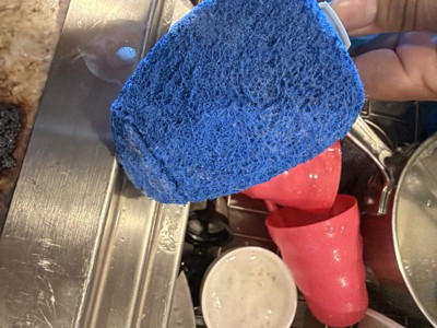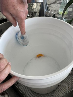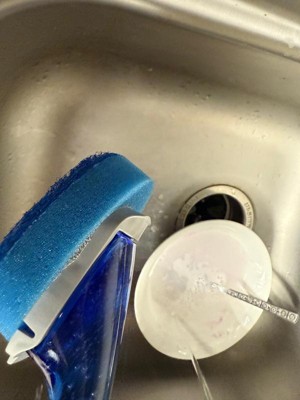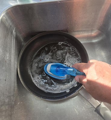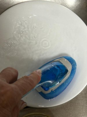 - Fill it up with your favorite dish soap and effortlessly wipe away grease and grime