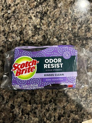 - SCRUBS FAST AND STAYS CLEAN: One two-pack of Scotch-Brite Stay Fresh Scrub Dots Non-Scratch Scrub Sponges