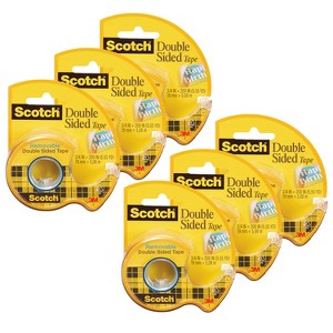 Scotch® Removable Double Sided Tape, 3/4" x 200", 6 Rolls | Scotch Double Sided Office Tape is coated with permanent adhesive on both sides. A no-mess alternative to glue for light duty attaching and mounting tasks. This tape has no liner to deal with, is long-aging and won't dry out or yellow. It comes in a handy, refillable dispenser for quick, easy and portable use. Each roll measures 0.75" x 200", photo-safe and made in USA with globally sourced materials. Sold as a pack of 6 rolls, each on a dispenser.