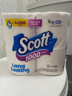 - 4 rolls of Scott 1000 Toilet Paper, 1-ply, 1000 sheets per roll