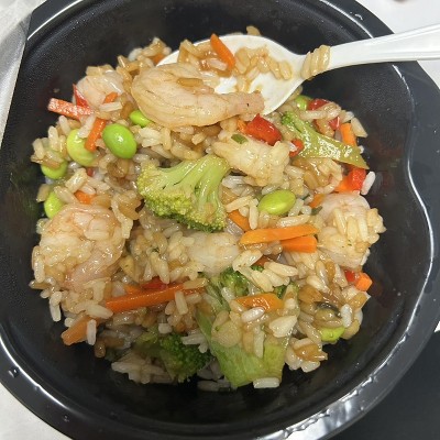 I had the Garlic Shrimp Rice Bowl and it was fantastic. Flavorful rice and plump shrimp made this easy microwaveable bowl a tasty meal.