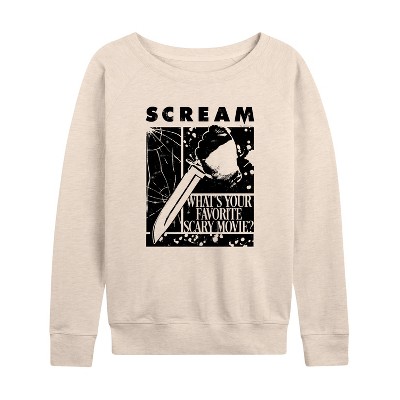 Scream - Logo -Women's French Terry Pullover Long Sleeve Shirt - Get slashed with style in Scream graphic apparel, featuring the infamous Ghostface and characters like Sidney Prescott and Dewey Riley. These designs bring the suspense and thrills of the slasher genre to your wardrobe