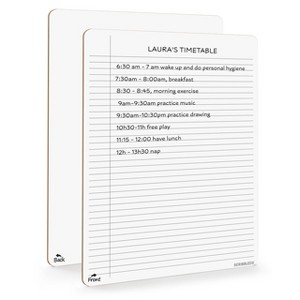 High-quality, lightweight double-sided dry erase board with notebook lines on one side and a blank white board surface on the other. Non-toxic, eco-friendly, and durable, it provides a smooth writing experience and is easy to clean, making it perfect for students and long-term use.